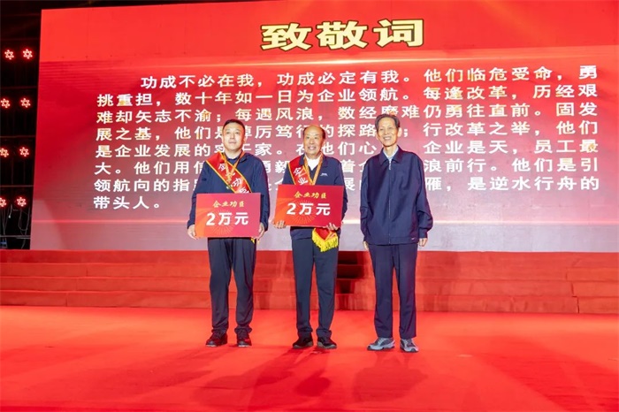 慶祝大會對在企業(yè)改革和經(jīng)濟發(fā)展過程中涌現(xiàn)出來的企業(yè)功臣、企業(yè)勞模進行了隆重表彰。